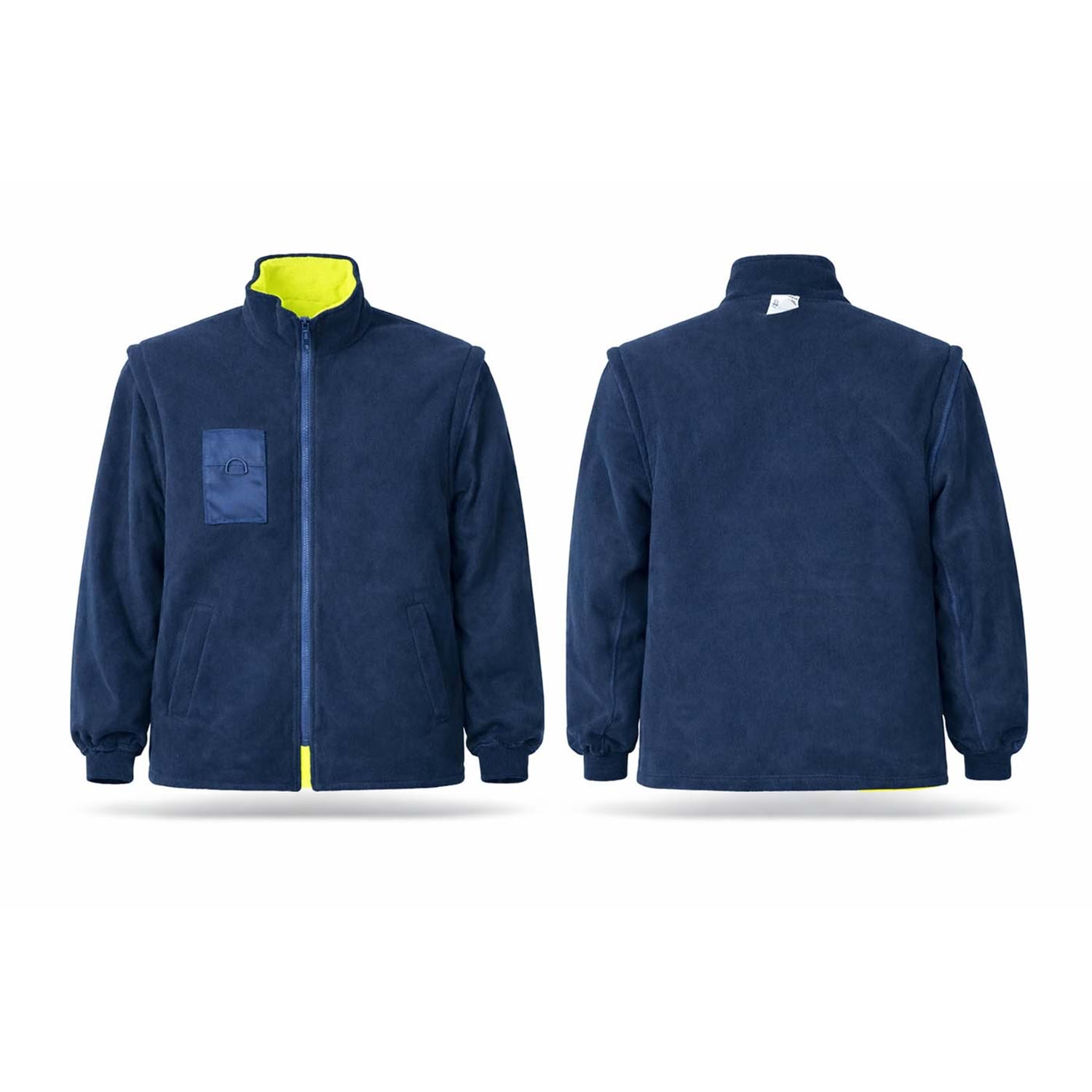 Çift taraflı iç dış kullanım imkanı sağlar (ister polar görünümü, ister yüksek görünürlüklü).